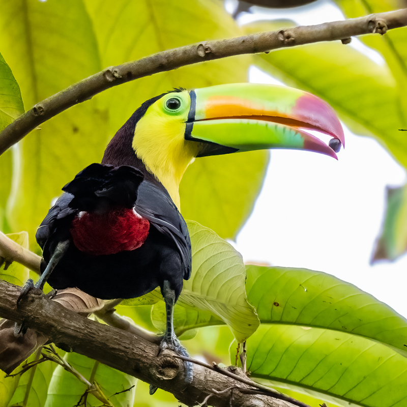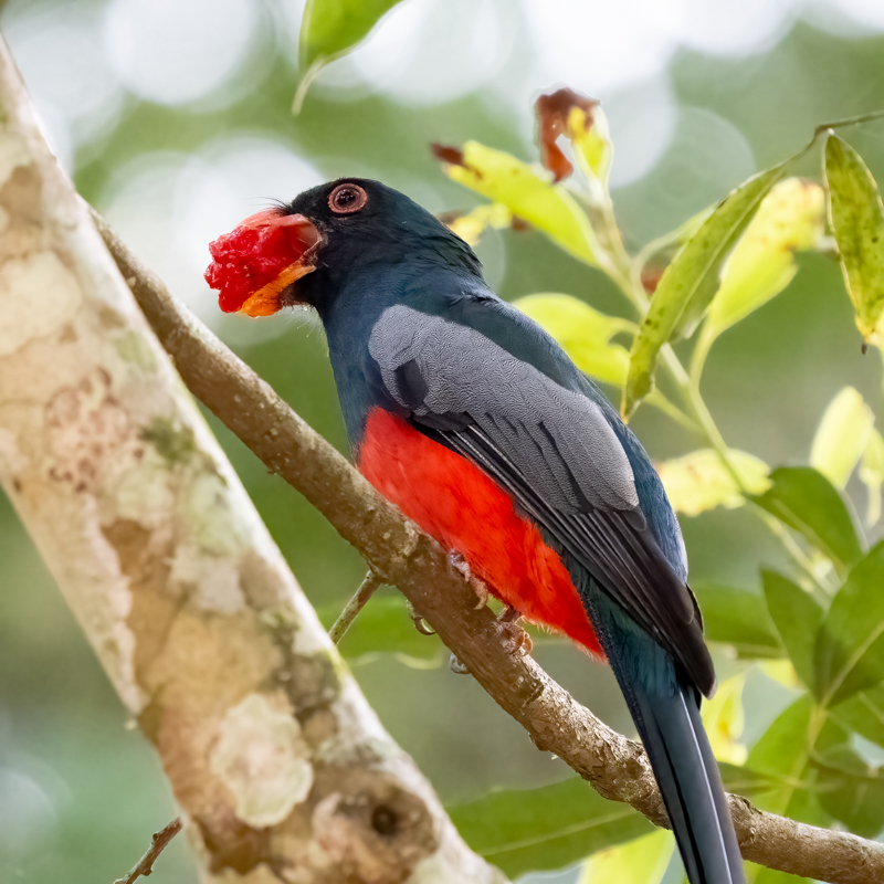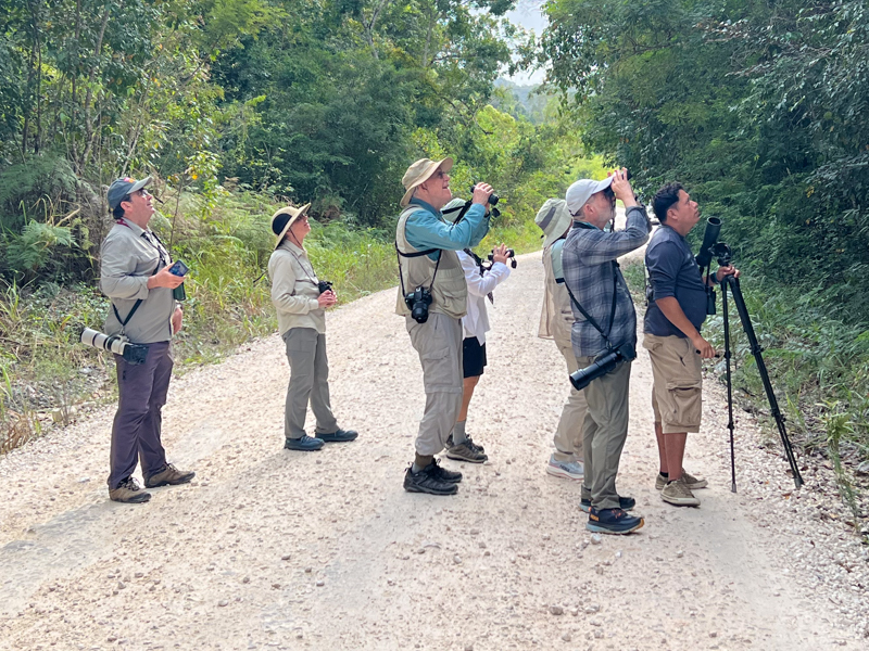 After our final night at Black Rock Lodge we prepared to move on to Lamanal near the northern border of Belize. After breakfast we packed and took a few final photos of the beautiful view across the Macal valley before heading to the vehicles. In the carpark one of the group spotted a Slaty-tailed Trogon, which provided some great photo opportunities as it tried to squeeze as much fruit as possible into its mouth.