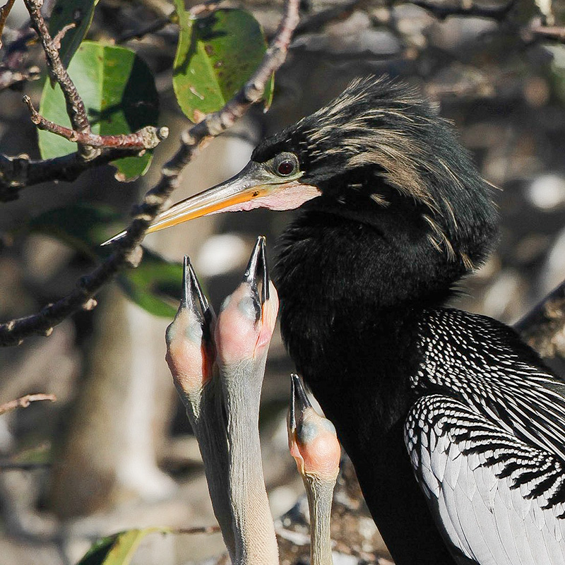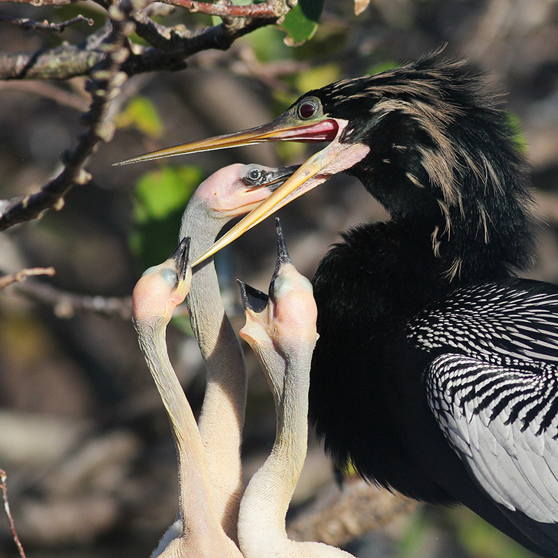 A highlight of our visit was seeing a pair of Anhinga feeding their young on a nest.